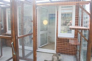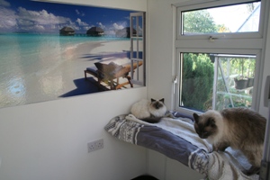 Luxurious Modern furniture is provided in the form of climbing and scratching trees ,as well as multi level observation platforms fitted with  sumptuous  vetbed fleeces to lounge and relax on. A grand staircase leads to a viewing area.