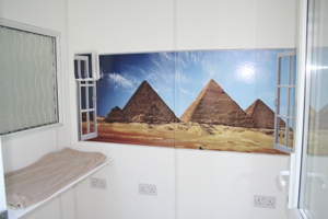 The suite is decorated tastefully with a bright Pyramid theme. Room heating is provided should the weather turn inclement.