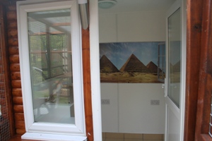 The entrance to the suite is via a double glazed upvc front door. Inside there is double glazed window, This also allows the guests to look out and observe the comings and goings of the many squirrels and birds which visit the garden. Perfect for spending a lazy morning or afternoon.